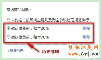 賣家可結合商品和服務特點,對商品的品質(材質、質量),自定義約定“服務履行前提”和“違約責任”,一旦賣家違背約定的內容,提供給消費者自己所承諾的補償。