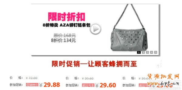 第六點是寶貝的關聯推薦,要讓顧客看到更多產品,繞來繞去看的都是我們的產品,停留的時間長了,跳失率下降、訪問的深度提高、成交率自然會上去。現在很多掌柜都做了寶貝關聯推薦,大部分人選擇的是置頂展示,其實這個關聯營銷方式也引起很大爭議,比如每當你看一家店鋪的5個產品的時候,每次拖動鼠標下來,都是長長的產品關聯推薦,您會是什么感受?我們需要做的就是關聯的界面盡量美觀,視覺方面的感受不能忽視,整個關聯的推薦框架的高度不宜過長,畢竟顧客點擊進來主要還是看產品的。當然了,依據實際情況,在左側190px模塊展示推薦的產品也是一個不錯的選擇。