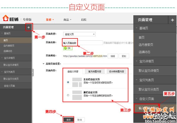 店鋪重要的三個頁面組成:店鋪首頁、寶貝詳情頁、寶貝列表頁(還有自定義頁面)。對于新手我還是上一下圖,特別是針對新旺鋪如何自定義頁面。