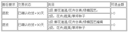 此外,本期產(chǎn)品還增加了特殊類目的逆向入口時(shí)間。主要是由于伴隨交易商品種類越來越多,部分商品并非在交易成功后的15天內(nèi)就能發(fā)現(xiàn)商品好壞,比如:花苗種子這類商品,本期將花苗種子類目的售后入口開放到確認(rèn)收貨后的90天。