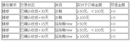 另據(jù)記者了解,根據(jù)三包法的規(guī)定結(jié)合淘寶規(guī)則,還將從女鞋、運(yùn)動(dòng)鞋類目試點(diǎn),將售后維修的申請(qǐng)入口開放的時(shí)間規(guī)則根據(jù)不同的場(chǎng)景開放。