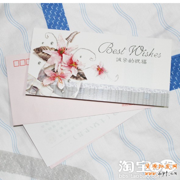 小訣竅:說到最后!我還有一個絕招!那可是我的看家法寶啊!既然大家看到了我的帖子!那就是緣分!呵呵告訴你們吧!我們店每法一單!都會在衣服里面塞上一張精美的祝福賀卡!上面寫上祝福的話語,也可以寫上店鋪的一些推廣活動哦!具體是什么內容!大家自己寫吧!但是一定要以祝福為主要目的!因為客戶買了我們的東西!就是對我們的信任與支持,我們送上一封精美的賀卡表示我們對客人的感激之情!我覺得這是一個非常不錯的表達方式!然而客人收到賀卡后也會多幾分驚喜!就是對寶貝有些小不滿意!看到賀卡也把不滿拋到九霄云外了是不?還能打打的增加回頭率呢!何樂而不為啊?