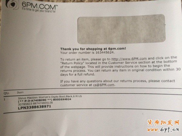 5、該訂單中商品的網站小票。