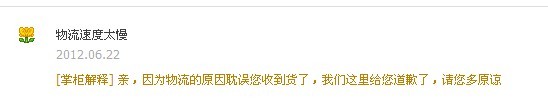 作為賣家,看到這樣的評價是否會郁悶得吐血呢!我們又不是自有物流,因為物流原因還要怪罪于店家,可不冤枉!但看到店家的解釋,是不是讓人有如沐春風(fēng)的感覺呢?謙卑有禮,讓人頓生好感。雖然是個中評,但是絲毫不會影響到人的購買欲望,反而讓人對店家心生敬佩呢。