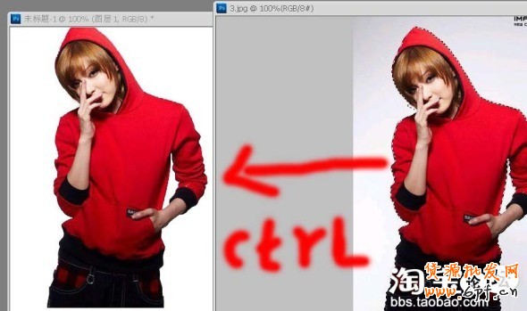 以此類推把所有要參加活動的寶貝全部用魔棒工具選中,按住鍵盤上的CTRL鍵直接拖到你之前所設(shè)置的背景板上。注意有些地方可能在選取的時候摳的不是很好,此時按住CTRL鍵同時按+號把圖象放大,然后按住空格鍵使鼠標(biāo)變成手形時,拉動圖像找到你所要進(jìn)一步修飾的圖像區(qū)域,用橡皮檫或仿制圖章等工具進(jìn)行簡單的修復(fù)。如下圖