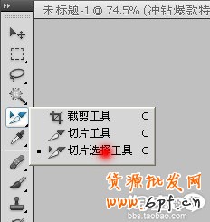 點(diǎn)擊左邊工具上的圖標(biāo)找到切片工具,如圖所示。選擇切片選擇工具,根據(jù)寶貝的屬性對版面進(jìn)行整體劃分,如下圖是劃分后的示例圖