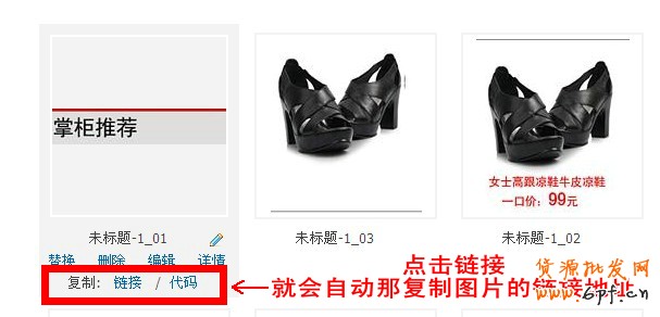 有了代碼之后,我們將代碼里的圖片鏈接替換成寶貝空間里的圖片鏈接,需要一一對應,千萬不要替換錯了。步驟如圖所示: