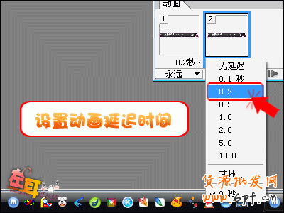 我們先新建一幀:接著設置每一幀的延遲時間,我選擇的是0.2秒/幀: