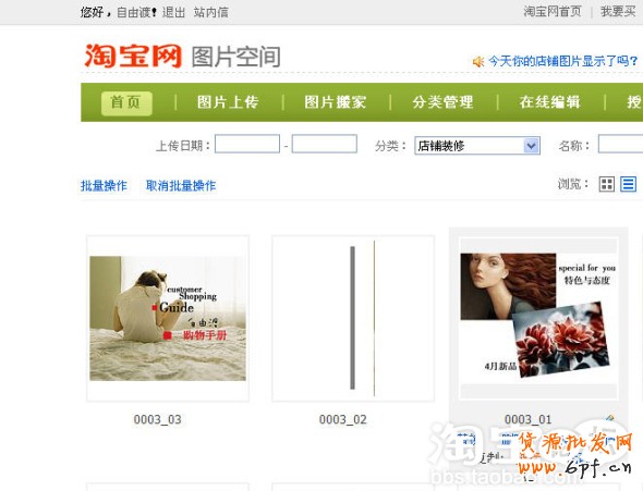 把這三張圖上傳到淘寶圖片空間里,目的是獲取圖片的有效鏈接,這樣才能在制作完成后在淘寶店鋪中顯示。這個大家都熟悉的了,不多說了。