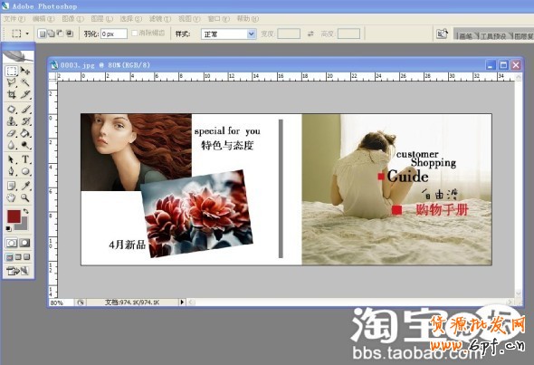 選擇好你要裝修店鋪所使用的圖,為了直接有效果,我使用的是我們親自設計的裝修圖片。由于我用的是店鋪直接裝修用的圖,放在尾頁部分的,所以尺寸為950長度。親們要事先選好圖片,做好哦。為了你的店鋪更美,圖片設計很重要哦。