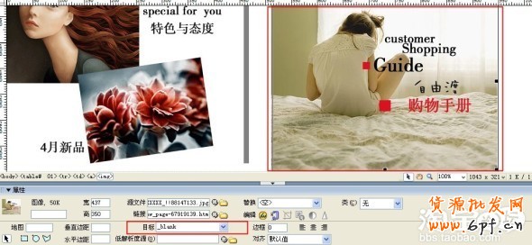 根據以上步驟,再用同樣的方法獲得02和03的圖片地址,分別點擊選中DW中的源文件地址,修改過來。在這個步驟需要說明的是:02是空白的剩余圖,是我不需要點擊鏈接的地方。所以只是更換了空間地址,而不需要有圖片鏈接地址。由于最開始的時候圖片地址是本地電腦的地址,為了在店鋪中顯示,依然要在圖片空間中獲得0003_02圖片的地址,更換源文件。 這一點大家明白了吧。