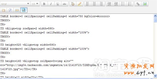 8、然后在布局表格上面設置好你需要插入圖片或文字描述的單元格,同時設置規格。上面的圖只是自定義板塊中的一部分介紹,如果你還需要的話,還可以繼續加上去,設計完了之后點擊“代碼”標簽: