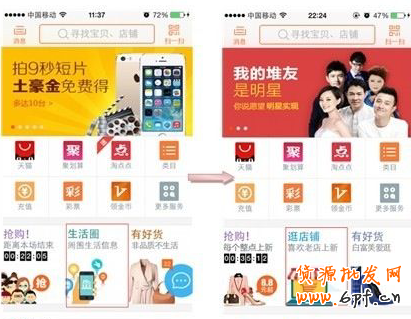 新升級的手機淘寶首頁,以前底部的“服務(wù)”按鈕,現(xiàn)在已更換為“生活”按鈕。點開“生活”按鈕,有團(tuán)購優(yōu)惠,愛逛街,特色服務(wù)、猜你喜歡(美食消費券)等內(nèi)容,與O2O達(dá)成有效的銜接,滿足了用戶生活消費和線上購物的需求,成為了方便快捷的生活消費入口。用戶可以隨時隨地查看附近的生活優(yōu)惠信息,像美食、電影、KTV等等,可見O2O趨勢在手機淘寶的發(fā)展是如此重要,因此,商家們可要把握好這一契機,打通線上線下的渠道,迎合無線發(fā)展。