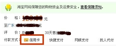 開通后,我們店里的每個寶貝下面會有這樣一個標記,這就是信用卡支付的標記哦!