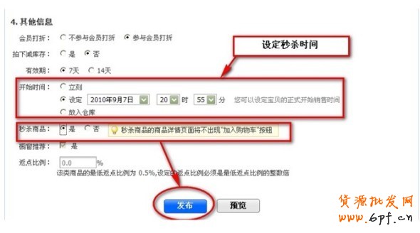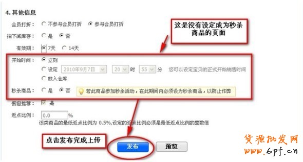 如果想把此商品設定為秒殺商品,則出現這個頁面: