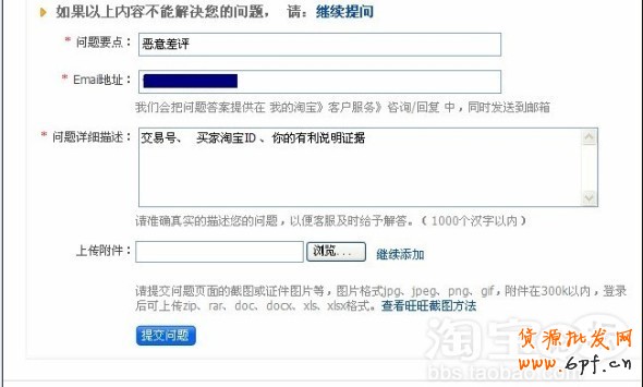 點擊:提交問題,一般 48-72小時之內客服就幫你會處理好了。百試不爽,注意一點,請注明問題原因,方便客服判斷,此方法很有效的,因為一般賣家不會去投訴惡意差評,所以忽略了最佳時機,我們要捉緊時間去申訴,越早成功率越高,只要不是貨品有問題或者欺騙消費者,差評一般可以修改的,大家把證據收集齊全,來回不斷的試,是一定能刪的,工作室一直在用次方法為賣家申訴,成功率很高,否則刪中差評工作室也不會先刪除后付款呢,主要是捉住賣家懶的心理,覺得很麻煩的心理,所以錢很容易讓工作室的就賺上了。