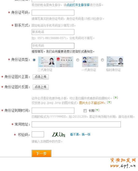 填完上述信息,下一步。接下來應該都比較容易。如果之前支付寶有通過認證的界面不太一樣,不過也很簡單。