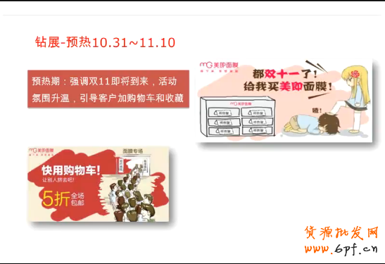 預(yù)熱期離大促時(shí)間近,周期短,品牌大促信息記憶度強(qiáng)。因此次階段適宜進(jìn)行互動(dòng),粗關(guān)注,收藏,增加流量,預(yù)告發(fā)放優(yōu)惠券,發(fā)放紅包,促進(jìn)轉(zhuǎn)化。
