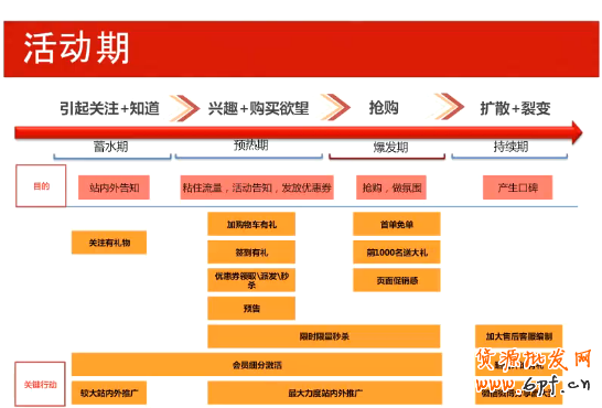 活動(dòng)期買(mǎi)家消費(fèi)意識(shí)強(qiáng)烈,但選擇多,需要多引導(dǎo)消費(fèi)。因此次階段適宜進(jìn)行,刺激,緊扣買(mǎi)家心里變化,設(shè)置有效促銷(xiāo)活動(dòng),促進(jìn)轉(zhuǎn)化提升,做好連帶推薦,產(chǎn)品結(jié)構(gòu),活動(dòng)獎(jiǎng)勵(lì),提升客單價(jià),發(fā)放大促后的優(yōu)惠券,延長(zhǎng)大促余熱。