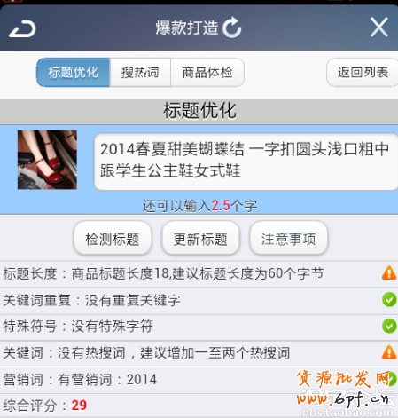 我是在手機上用千牛商品管理檢測寶貝標題分數(shù)的,唉,被深深的打擊到了