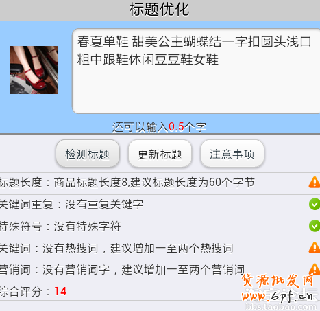 當前位置: 貨源批發(fā)網(wǎng) » 網(wǎng)商學院 » 網(wǎng)店推廣 » 推廣必備 » 淘寶排名 » 淘寶優(yōu)化 » 千牛支招優(yōu)化標題 90分手到擒來