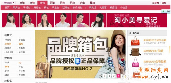 而淘寶P4P是什么?相信大家應(yīng)該也看到在淘寶首頁和對應(yīng)類目頁有循環(huán)圖片或者固定大幅圖片,也有小幅圖片,這些就是p4p的對應(yīng)廣告位置,以箱包類目為例,如下圖:
