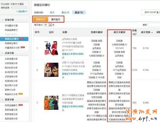 在這里,第一,我們要看寶貝,大致的看一下什么類型的,什么版型的,什么風格的,什么布料的是排在靠前的,這些都要做記錄。
