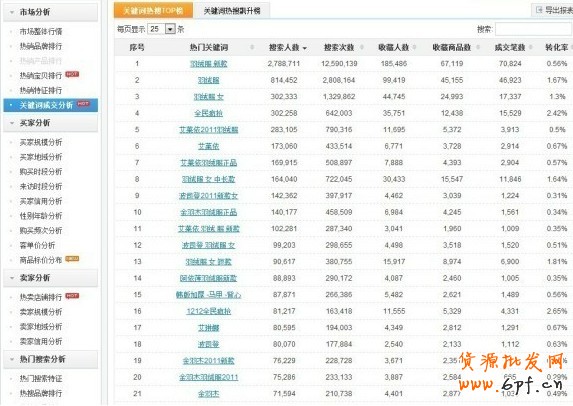 我們自己選寶貝來作為爆款計劃的時候,一定要參照一下這里面的數據。就是《熱銷特征排行》!因為如果我們的寶貝是新品,或者已經開始銷售了,但銷量并不是很高的情況下,我自己的貨源還無法確定該怎么準備,在這個時候,如果可以好好分析這個數據,掌柜心里就會有底了。比如,圖片上的尺碼,如果不是做過銷售多年羽絨服的賣家是很難判斷到底哪個尺碼會熱賣,哪個尺碼的需求量最大。但是在這里已經給出了一個數據,一眼就能發現M碼是在羽絨服里面銷售最多的一個尺碼。這樣就是一目了然。尺碼旁邊還有各種特征,比如