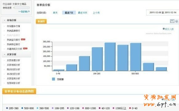 上面3張圖,以不同形式給大家展現了各個客單價區間的寶貝所購人數占比。這個比在淘寶搜索框里面輸入關鍵字后得出的結果頁下面展示的4個區間的價格更詳細。我們可以參考這些數據來給我們的寶貝做一個比較合理的定價。做定價的時候會有成本因素,品牌因素,定位因素,活動因素等等因素,但主要成交價還是要考慮大眾所容易接受的價格區間!這樣就會八九不離十。而且還有一點就是,其實,價格不是越便宜越受買家喜愛。如這里顯示的數據一樣,0~120元的寶貝是沒多少人喜歡的,因為大家都知道,羽絨服的成本在那里,如果這么便宜,都不知道里面的東西到底是什么。對寶貝不放心,不信任!所以不要一味的去以低價來打開市場!