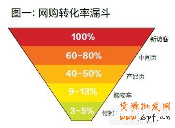 大家都知道B2C的轉(zhuǎn)化率不高,卻重不知道客從那里被掉失。眾多用戶進(jìn)來網(wǎng)站,經(jīng)過首頁(yè)、中間頁(yè)、產(chǎn)品頁(yè)、購(gòu)物車以及結(jié)算等重重關(guān)卡,通常他們?cè)谶@幾個(gè)環(huán)節(jié)是怎么分批離開的呢?