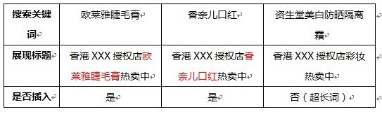 假設買家搜索關鍵詞:歐萊雅睫毛膏, 那么該標題展現的時候會自動變為:香港XXX授權店歐萊雅睫毛膏熱賣中。