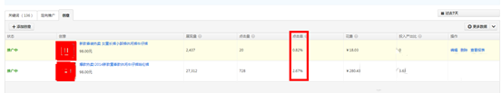 4、一段時(shí)間內(nèi)投入產(chǎn)出比差的關(guān)鍵詞降低出價(jià)觀察