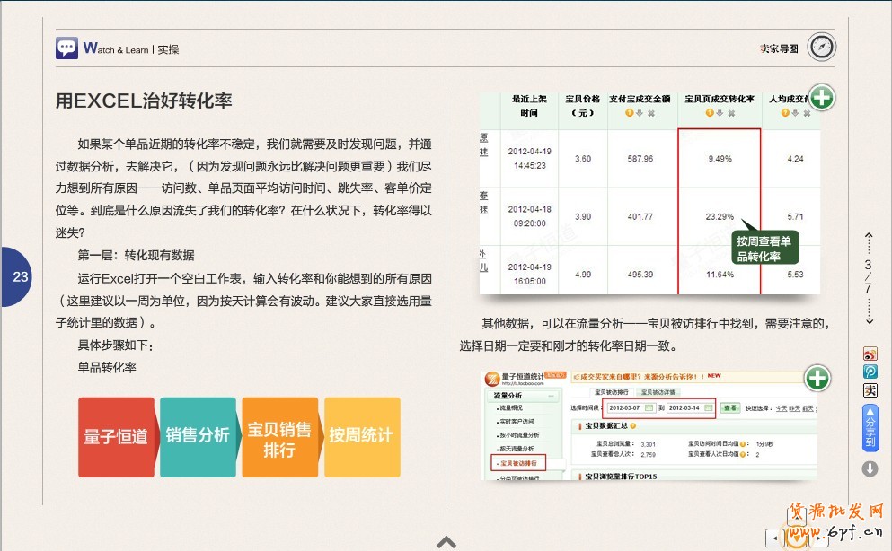 根據《賣家刊》的用Excel制好轉化率,小編比葫蘆畫瓢的把自己店鋪數據做了出來。