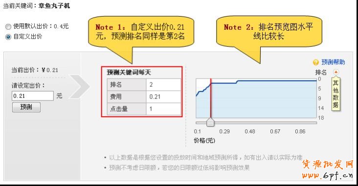 當出價時預測排名的預覽圖水平線比較長時,盡量選擇在圖形往下折的那個點;若該關鍵詞