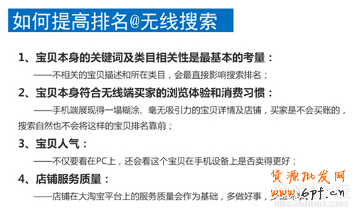 首先,我們先了解關于手機端搜索的排名算法規則。手機端算法承襲了PC端淘寶搜索的引擎技術和相關性算法,在搜索商品結果集和搜索排序基礎權重保持一致的同時,根據手機淘寶買家的差異化行為習慣(ID定向:年齡、星座、興趣愛好、瀏覽過的信息等),對搜索結果在展現和排序上加以調整和優化,以提供給移動終端用戶更好的搜索體驗。總體來說,無線自然搜索規則基本上已經與PC相似,并開始著重“個性化”搜索結果。