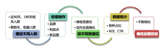 使用達摩盤,首先要有一個營銷思路的轉變。在沒有使用達摩盤之前,他們的營銷思路基本是運營給到設計師作圖需求,圖片做好之后,開始投放。選用最多的就是訪客定向,但是訪客定向也只是選取少數幾家店鋪,到底適不適合自己店鋪是不能確定的,投放的資源位也比較少。“達摩盤帶來的是相應的圈定人群,所以改變了對于資源位的定向操作,達摩盤人群細分,訪客定向選定的人群細分,資源位細分。”