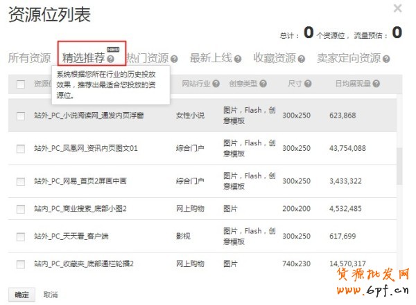 答:系統精選推薦同時包含站內站外,建議根據自己的投放情況和流量需求在選擇合適的資源位;或者建立多個單元分批做資源位的選擇投放