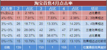 淘寶首焦4月點(diǎn)擊率統(tǒng)計(jì)表