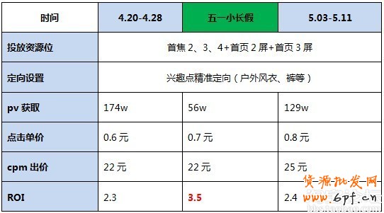 我們來看下去年一家戶外店鋪五一前后的投放情況。