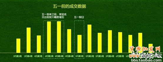從去年同期全網成交趨勢來看,五一前3周開始,全網成交出現一個小高峰。每個時間段需要掌柜做不同的店鋪籌備工作。