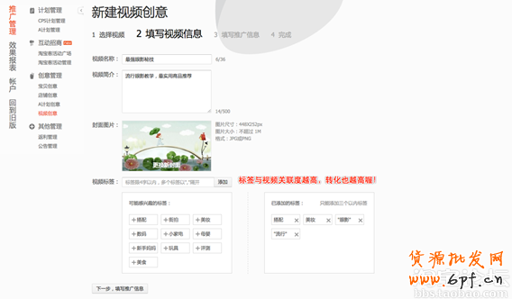 Step2 賣家在阿里媽媽后臺(tái)上傳視頻并關(guān)聯(lián)商品鏈接;
