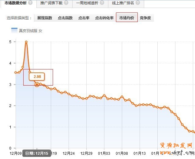 我們看到,雙12以后,行業的平均點擊單價降到3塊錢以下,而且點擊單價在慢慢下降,最關鍵的是行業轉換率也慢慢上升達到了頂峰值,所以這個時間結點開始,直通車風險系數是最小的,只要產品OK,風險幾乎為零,所以這個時期開始加大油門,可以放心擴大直通車流量,擴大戰果,實現利潤的最大化。