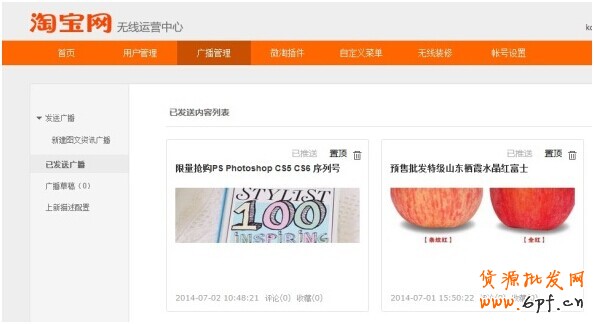 (1)進(jìn)入淘寶無(wú)線運(yùn)營(yíng)中心,進(jìn)入“廣播管理”