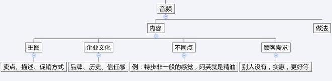 手機音頻的內容主要可以從顧客想要什么、產品的利益點、我比別人不一樣的地方等來充分發揮,具體可以從下圖來延伸。