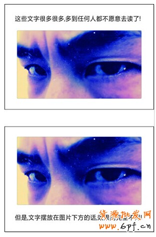 沒錯,那就是調(diào)換文字與圖片之間的位置,事實證明,文字?jǐn)[放在圖片下方,會比放在圖片上更加讓人愿意閱讀。