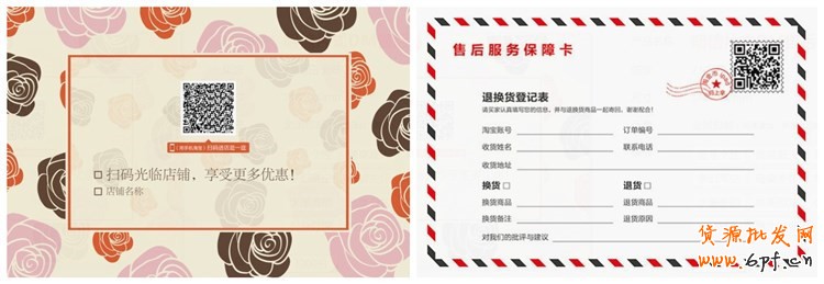 (5)在包裹中放入一些店鋪印刷品比如售后保障卡,更能體現一個店鋪服務、保障、誠意。 售后保障卡需要標明7天無理由退換貨,有退換貨的服務流程及供客戶填寫的表格。