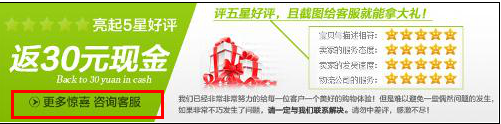 返現(xiàn)金額盡可能力度大點(diǎn),淘寶眾多賣家一般設(shè)置的返現(xiàn)是2元、3元、5元等,但畢竟這么設(shè)置的商家太多,久而久之吸引買家的效果就不是很強(qiáng)烈了,因此在利潤(rùn)允許的情況下,返現(xiàn)力度要盡量最大化。