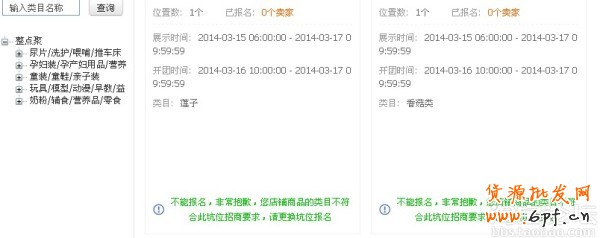 店鋪主營是家紡,床上用品。可是看了3月份的可報名日期都是這樣子的情況。