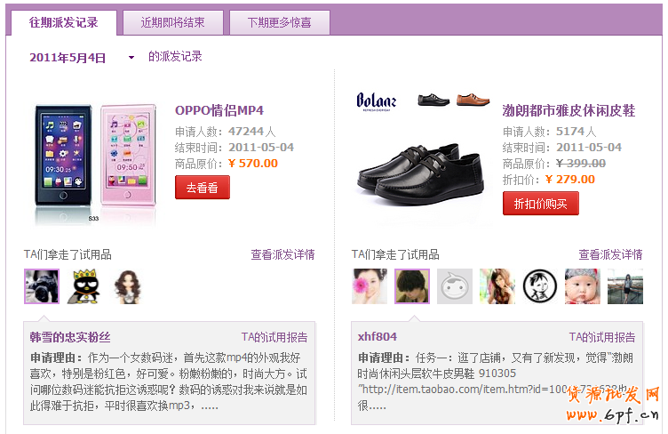 我們開放了歷史數(shù)據(jù)的查詢——“誰拿了試用品”,讓每個會員都能按照時間、試用品清楚的查詢試用品發(fā)放情況,具體發(fā)放了給哪些會員,這些試用成功的會員都是怎樣成功的,他們的申請理由是怎樣的,任務(wù)完成的情況等等: