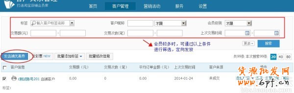 2、通過會員關系管理的會員營銷精準發放店鋪優惠券